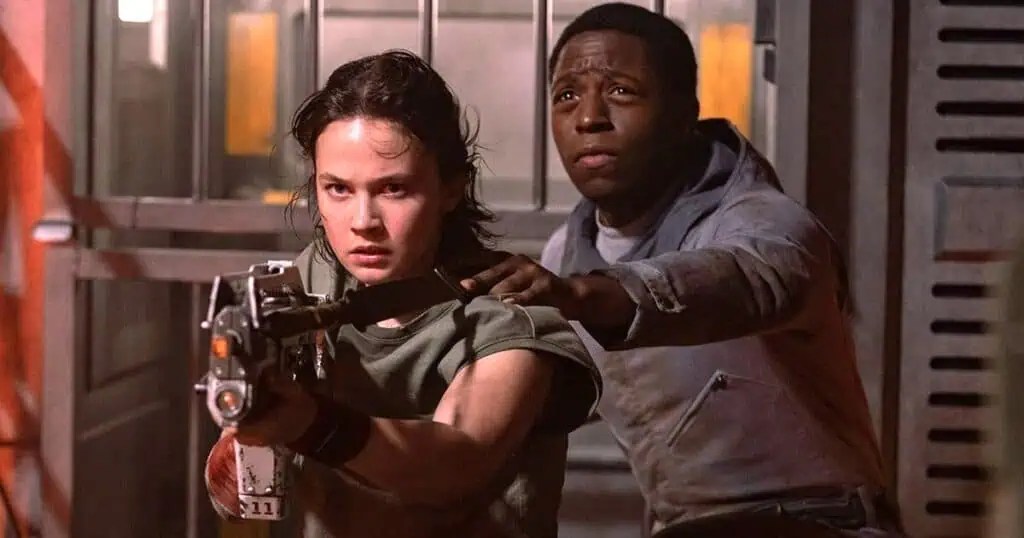 Feeling hopeless, Rain is offered a shot at relocation when her ex-boyfriend and fellow miner, Tyler (Archie Renaux), includes her in a plan to commandeer a decommissioned ship aboard the Renaissance. The plan is to use the cryo chambers onboard (which humans use for space travel) to escape to Yvaga, a more hospitable planet. However, they need Andy for the mission since he’s the only one who can access the ship’s computer system, and Rain comes with Andy. With her options limited, Rain decides to join the crew, which also consists of Tyler’s pregnant sister, Kay (Isabel Merced), his cousin Bjorn (Spike Fearn), and his pilot girlfriend, Navarro (Aileen Wu).